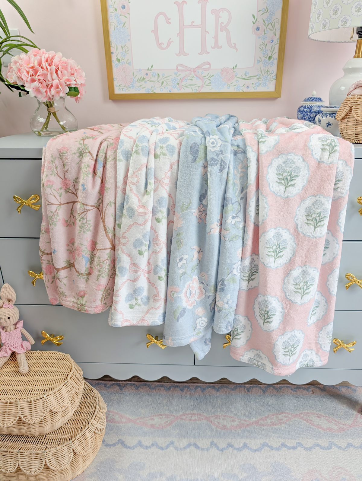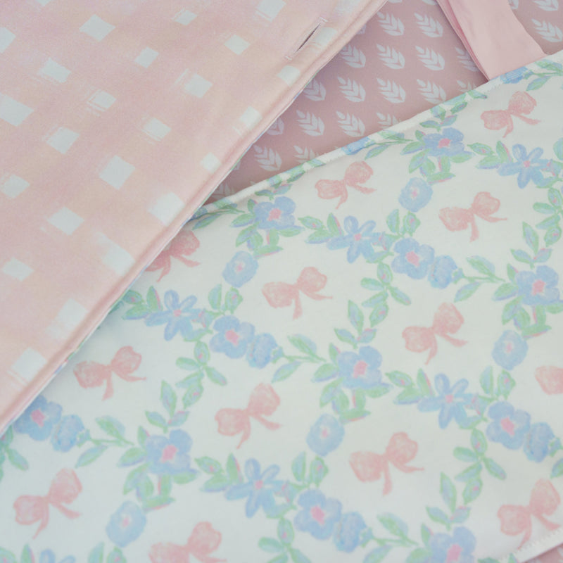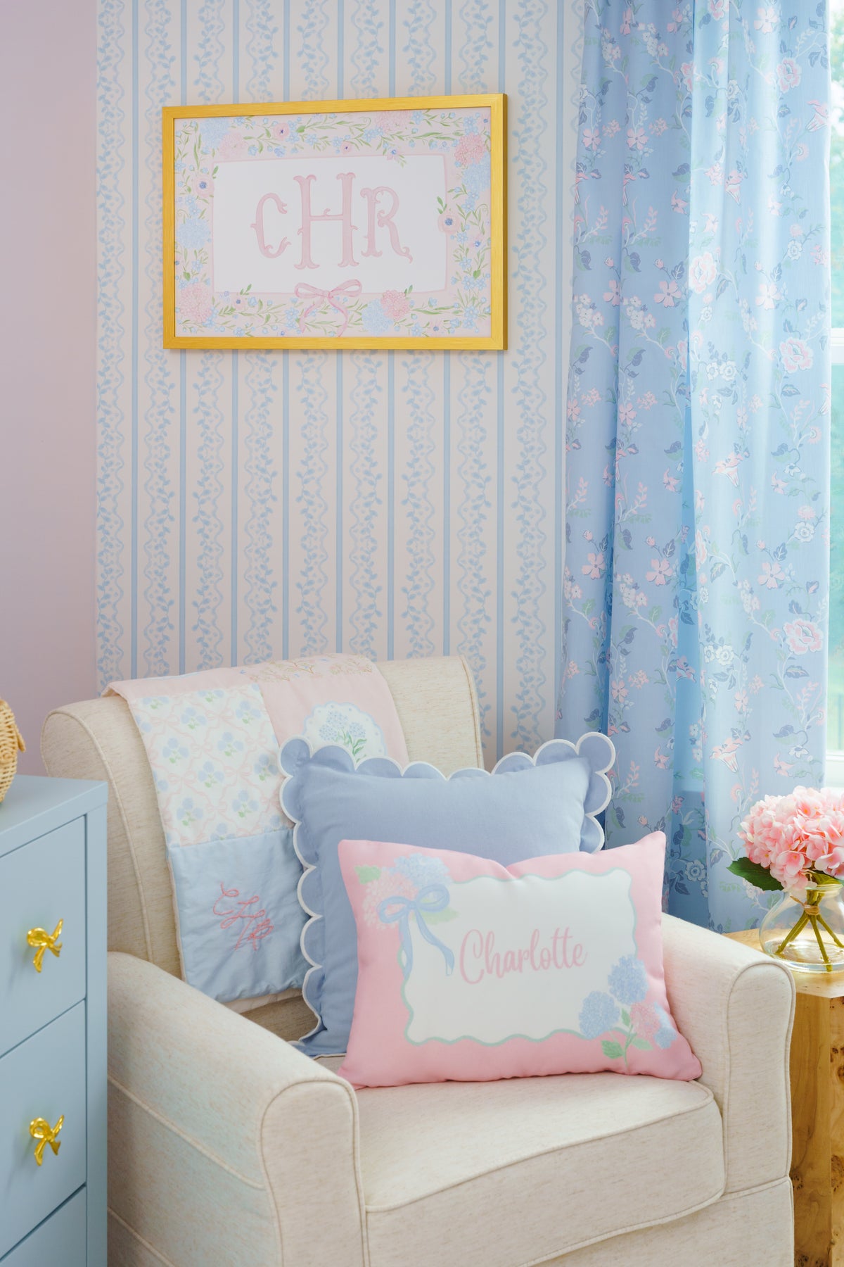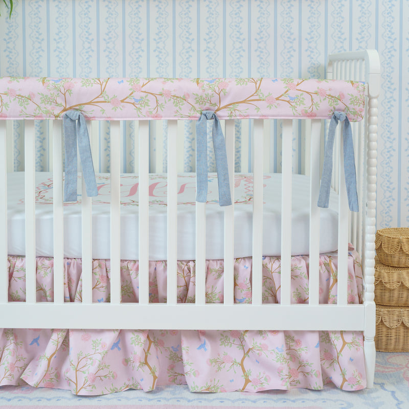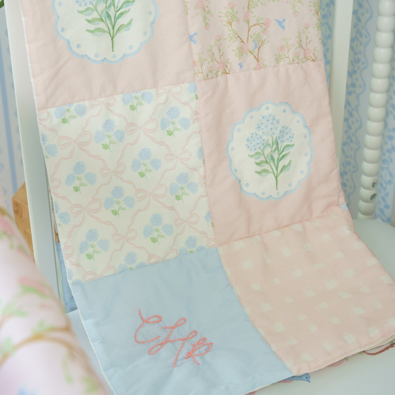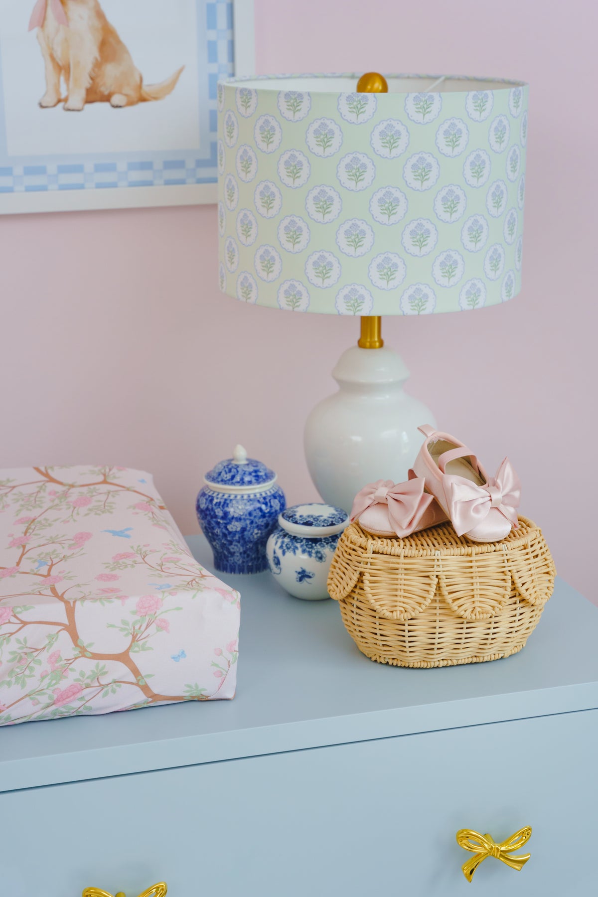 Our nursery textiles are designed in-house and crafted right here in the USA by our small but mighty sewing team. Every bow, stitch, and scallop is made with love (and a serious eye for detail). PS: diaper bags are the one exception—they’re globally sourced, but always chosen for quality and durability.
