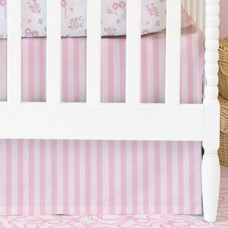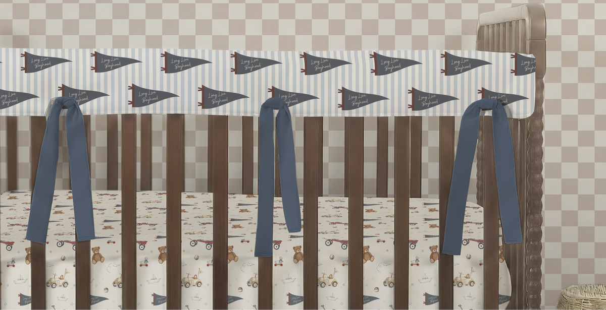 Each crib skirt is thoughtfully designed with both function and flair. Choose from a range of patterns and colors to match your nursery’s theme perfectly. These fit snugly around the crib, adding a polished touch to your setup. Want to complete the look? Pair your crib skirt with matching crib bedding pieces like sheets, blankets, and rail covers. Together, they create a full crib set that’s stylish, cozy, and oh-so-coordinated.
