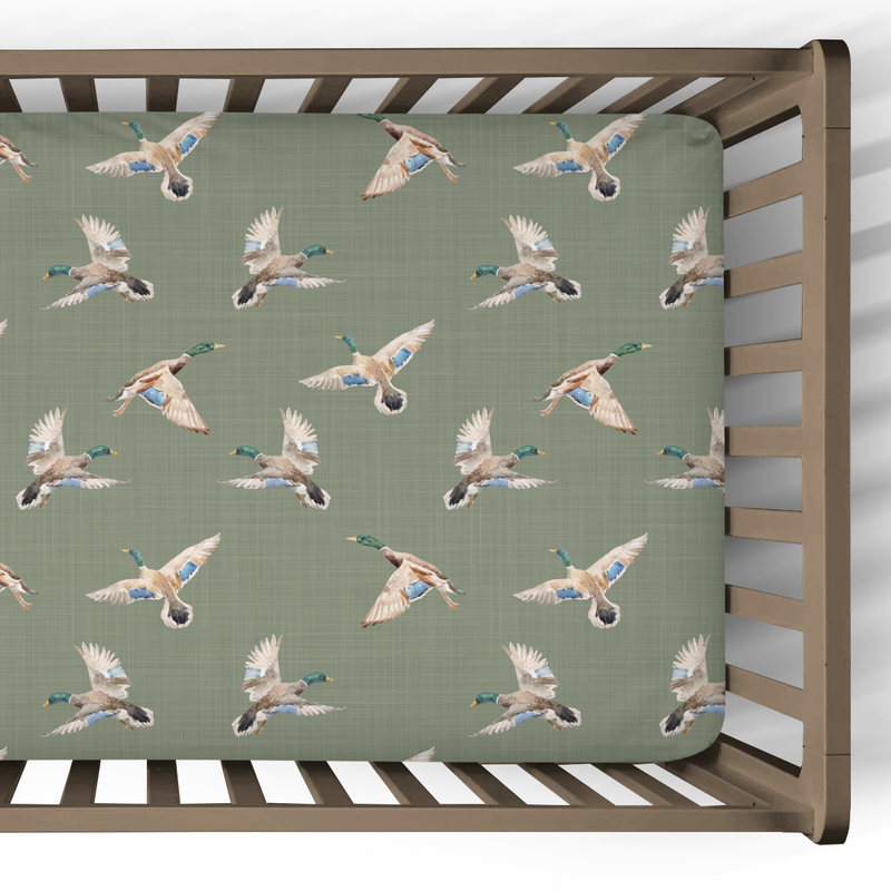 To start, this collection includes all the mallard duck themed nursery decor you could want. You’ll find everything from personalized crib sheets and soft blankets to wall art, nursery pillows, and curtains. Above all, each piece is carefully crafted to make decorating simple and enjoyable. Additionally, you can mix and match our duck crib bedding and decor to create a complete duck crib set, or simply add a few accents to finish off the look. With classic mallard duck crib sheets, your little one’s space will feel playful and on-trend. Even better, this decor grows with them, easily transitioning from a baby nursery to a big-kid duck bedroom.