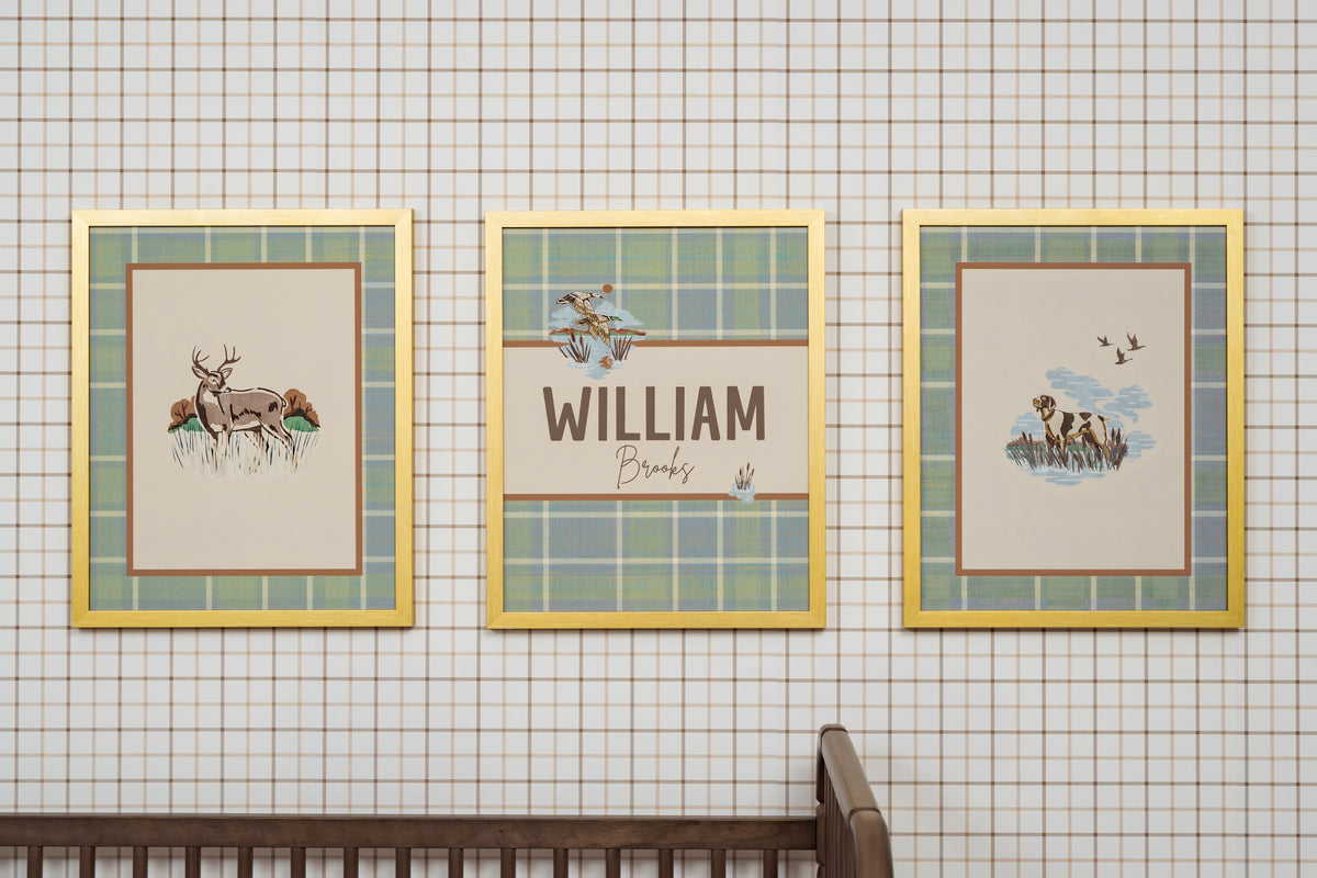 Inspired by English sporting estates and countryside traditions, Mallard & Moss blends heritage plaids, waterfowl motifs, and field-ready charm. Ducks, dogs, and mossy greens come together in a collection that feels both timeworn and tailored—classic hunting style, thoughtfully reimagined for the nursery.