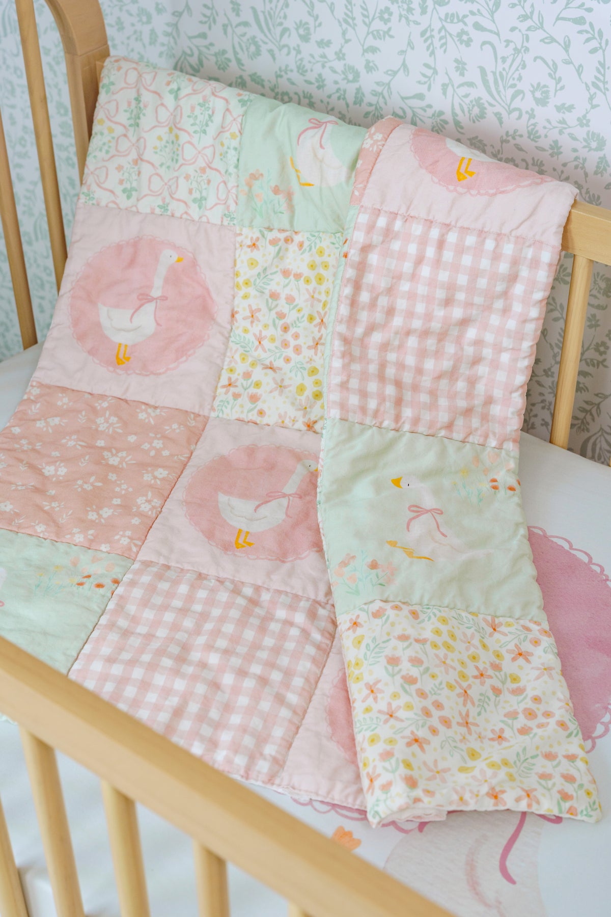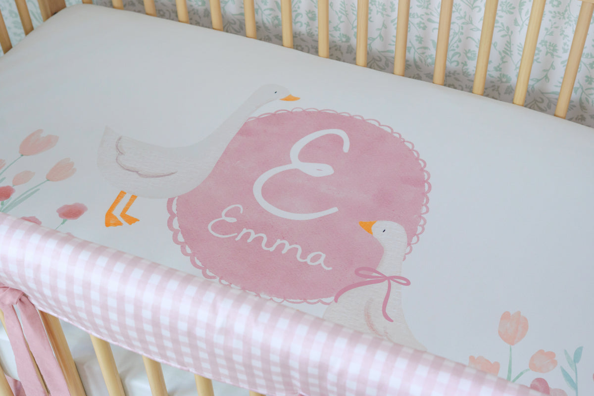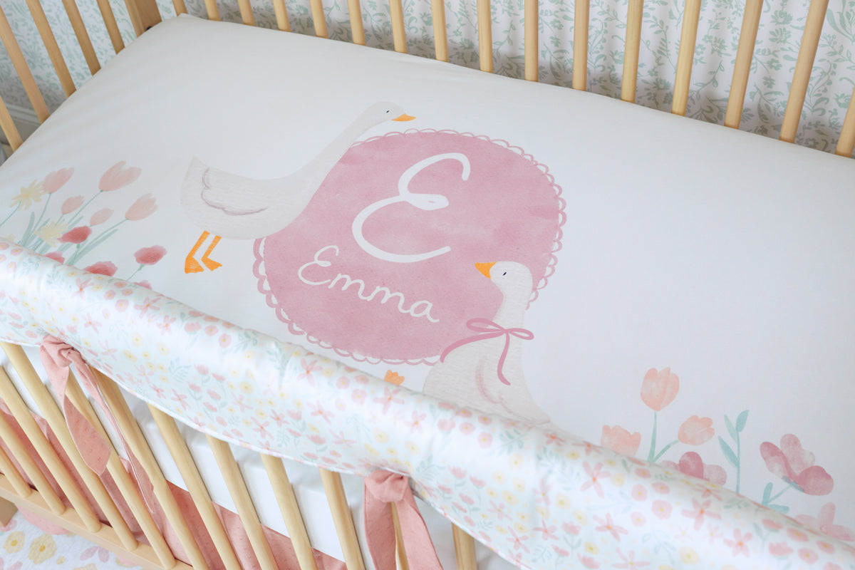 This rail cover adds a soft, storybook touch to the crib—perfect for layering into a vintage-inspired nursery with warm woods, linen textures, and gentle watercolor accents. Style with a cozy knit throw draped nearby or a woven basket of board books to complete the look.